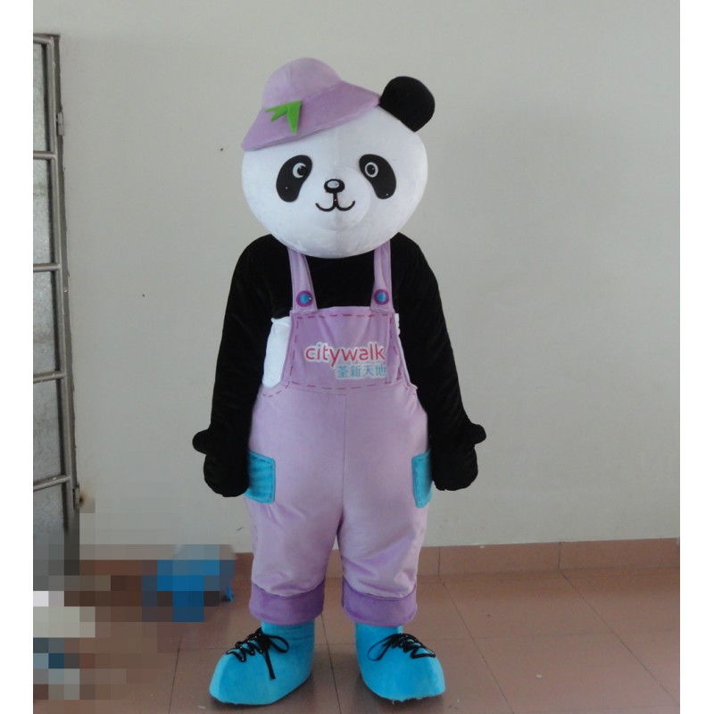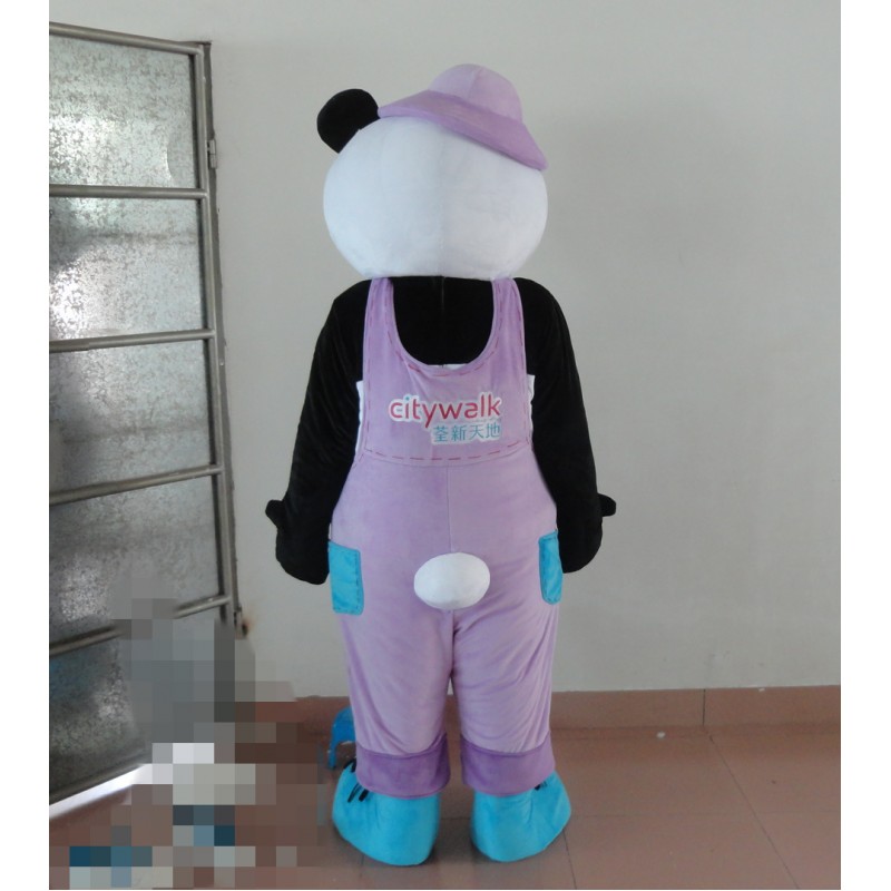 Panda Mascot Costume with Purple Clothes